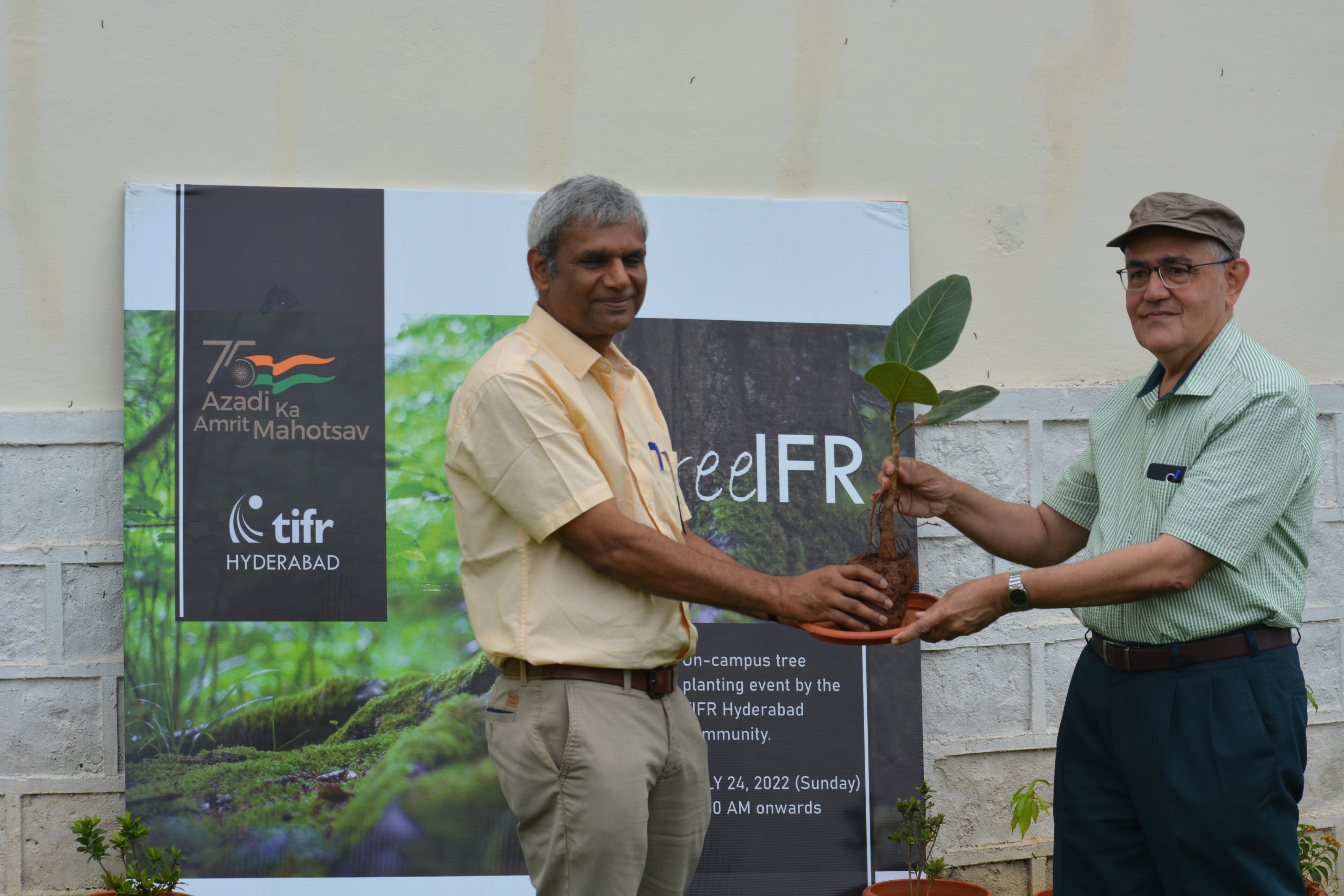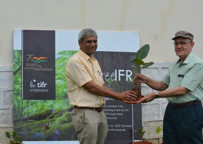 Planting a sapling from the Bhabha Banyan at TreeIFR, TIFR Hyderabad (2022)