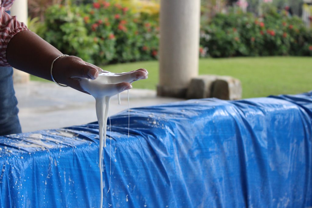 A large Oobleck setup (cornstarch and water in a 2:1 ratio) demonstrated non-Newtonian fluid behaviour. Students observed how the material behaves like a solid under force and flows like a liquid when undisturbed. The hands-on format enabled direct engagement with the concept.
