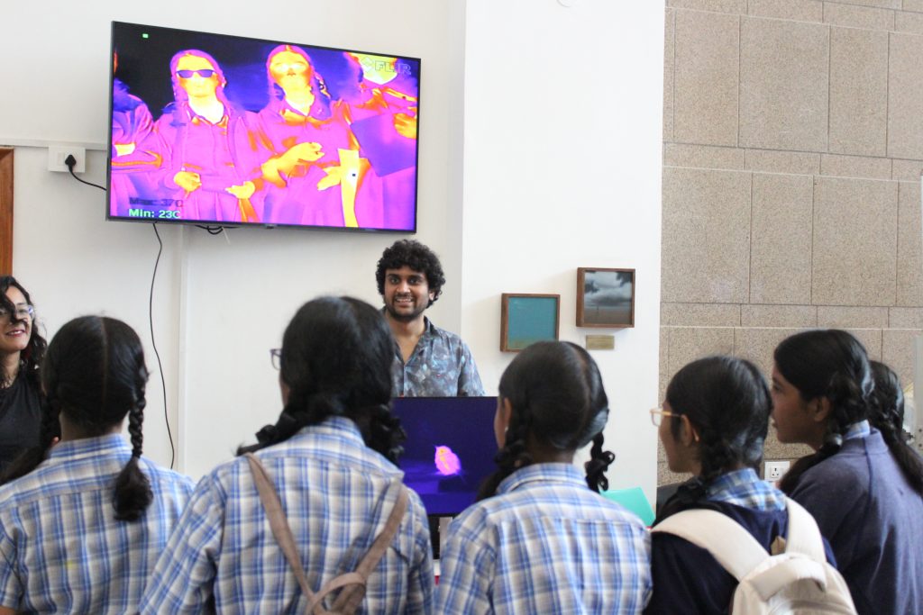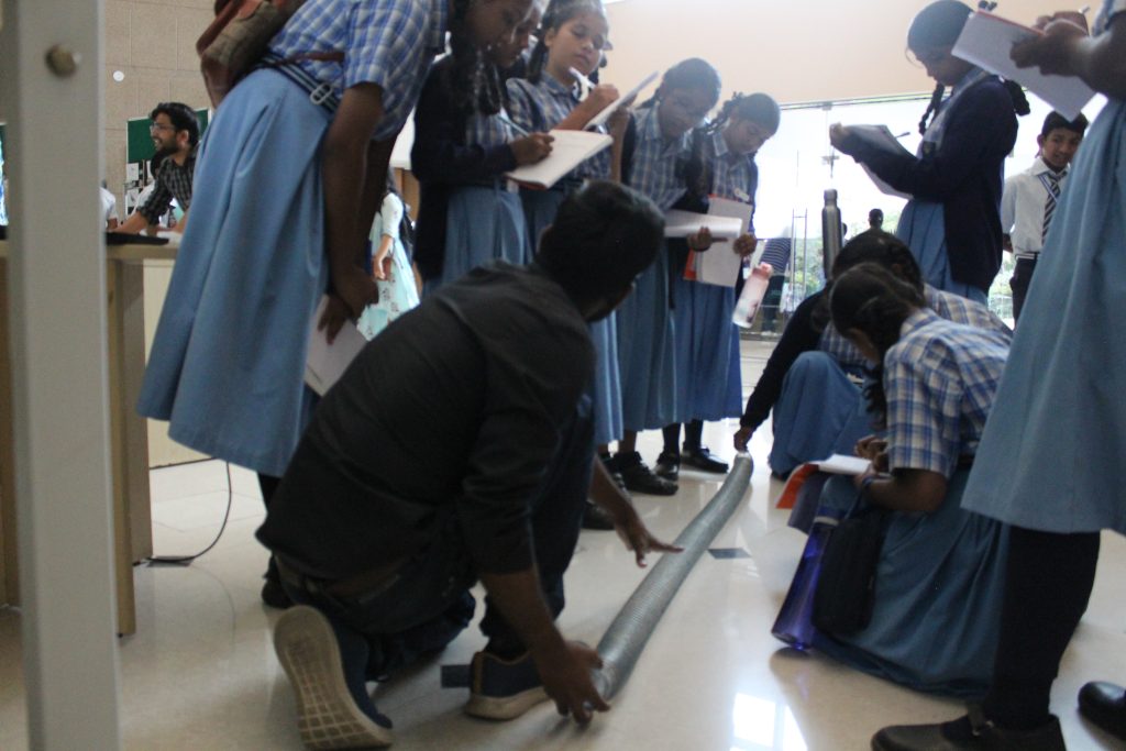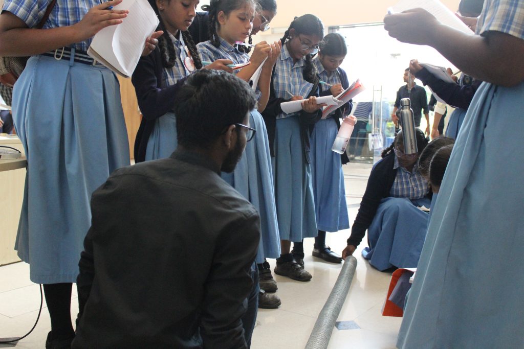 Besides demonstrations, TIFRH members also set up a fly station (observing life cycle of a fly and eye colour phenotype) and an art installation (made my the participants themselves by answering simple questions!). Faculty members Pranav Shirhatti and Manish Jaiswal also interacted with the visiting students. The day ended with student feedback where they described their favourite activities from the day.